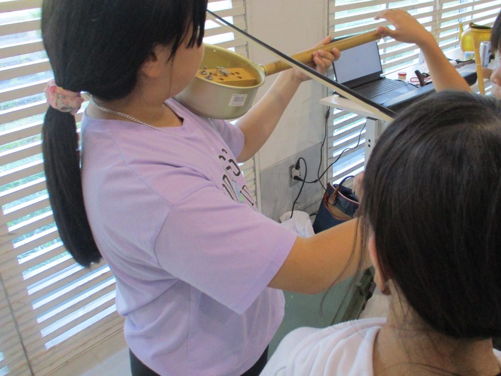 大型児童センターこども未来館 【2025年9月】あいぽーとワークス「手作り楽器で奏でよう!あいぽーと音楽隊」 2025.10.03 講師の「キュッパさん(今野英生さん)」を講師をしてお呼びして、音楽イベントを実施しました!キュッパさんの素敵な演奏を聴いた後に、身近な物を使って楽器作りに挑戦したよ!完成した楽器をみんなで演奏したよ☆音楽をたくさん楽しむことができたね◎