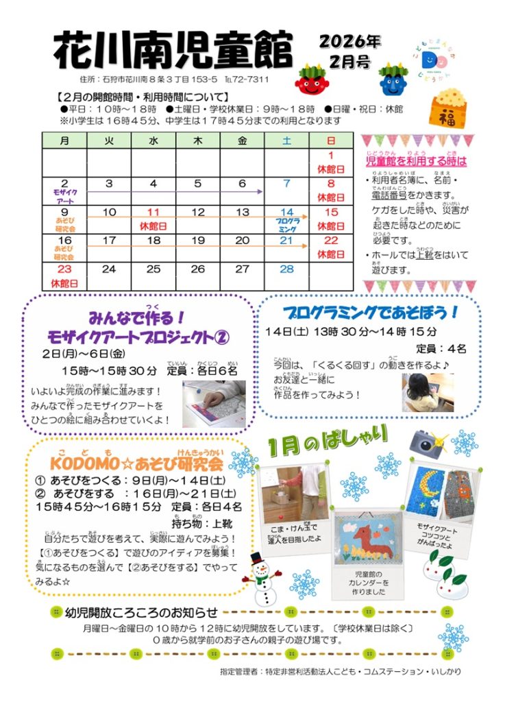 【おたより】花川南児童館2026年2月おたより