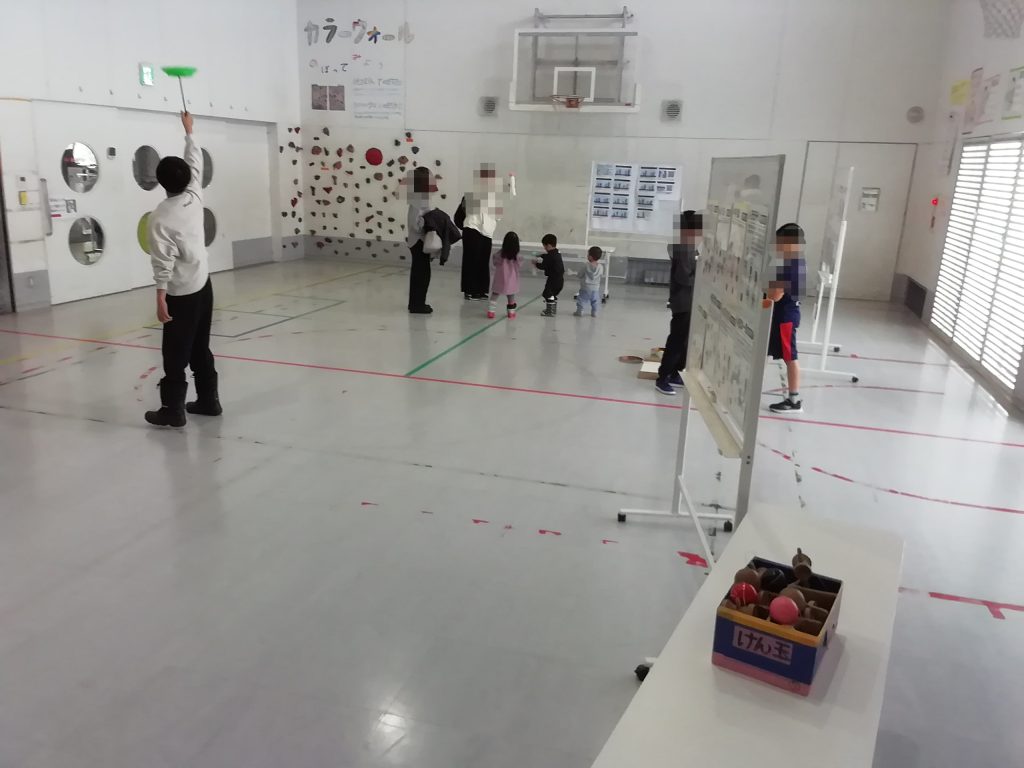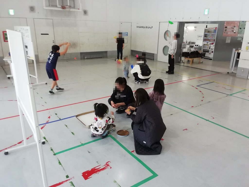 毎月第1土曜日に大人の方も含め、みんなであそぼうと企画しています。今回はみんなで「コマ・けん玉・つつけん・皿回し」の4種類のスキルトイで遊んでみました!小学生が幼児さんに技を見せたり、大人の方が小学生の技をみてすごいね!と伝えてくれていたり、色々な交流が生まれていました☆