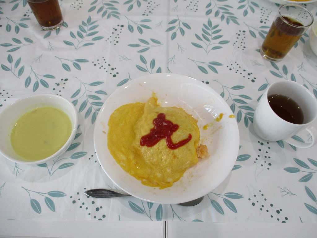 今月は後半のメンバー最後の活動としてご家族を招待する「おもてなしの日」を実施しました☆この日に向けてメンバーがメニューを考案しました!メニューはオムライス・コーンクリームスープ・オレンジゼリーの三品でした☆協力しながら大人数分完成出来ましたね◎みんなで昼食をとり、楽しくはらぺこクラブを終えることが出来ました!