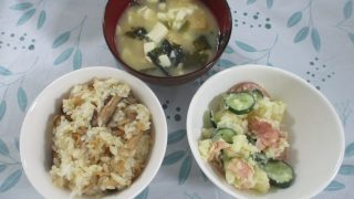 今月のはらぺこクラブでは、きのこと油揚げ混ぜご飯、ポテトサラダ、豆腐とわかめの味噌汁の3品を作りました!調理器具の使い方にも慣れ、作業を分担しながら楽しくスムーズに調理を行うことができました☆今回も美味しく食べることができましたね◎